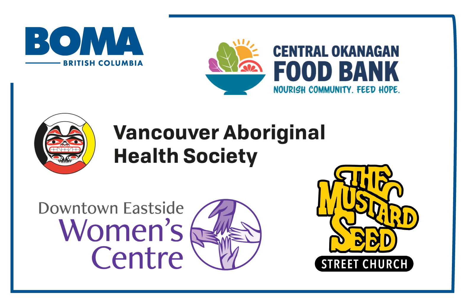 In 2025, BOMA BC members proudly raised $25,000 in support of the Vancouver Aboriginal Health Society, Central Okanagan Food Bank, Mustard Seed Victoria, and the Downtown Eastside Women’s Centre. These contributions helped advance essential programs and services in Vancouver, Victoria, and Kelowna, delivering meaningful support to individuals and families in the communities we are proud to serve.